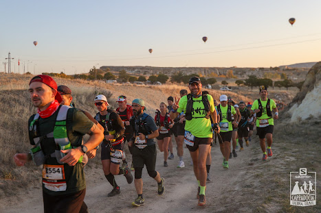 Güneş yüzünü göstermeye başladı yaklaşık 7 km sonra Ortahisar beldesi güney tarafında butik otellerin olduğu uzun bir merdivenden aşağı doğru inip yeşili ağacı bol olan bir alanda koşmaya devam ediyoruz vücudum ısındı tempomu buldum Zafer abi ile birlikte ilk checkpoint noktasına yaklaşıyoruz gökyüzünde ki balonların bazıları yarışmacıları daha yakından görmek için yere yakın uçuş yapıyorlar karşılıklı birbirimize el sallıyoruz iki tarafta halinden çok memnun.